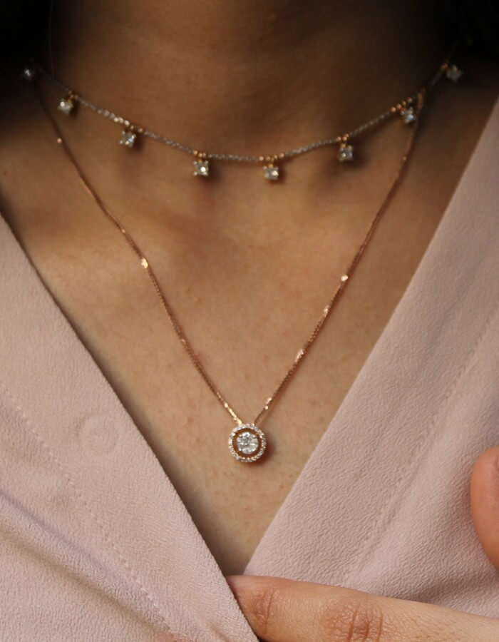 Light and grounded, bold yet delicate — this layered necklace balances chakra energies with diamond clarity and heart-ce...