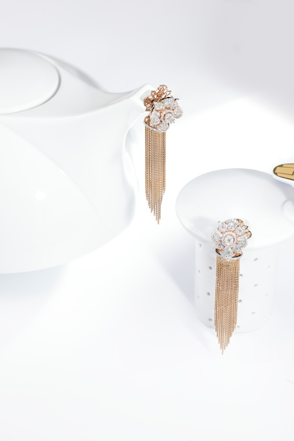 Discover the captivating beauty of Sruthilaya’s Gold and Diamond Drop Earrings, adorned with luxurious tassels of gold and sparkling natural diamonds. Crafted in exquisite 18-karat gold, these earrings are a true testament to elegance and craftsmanship, perfect for any special occasion. Shine truly and embrace the allure of timeless sophistication!