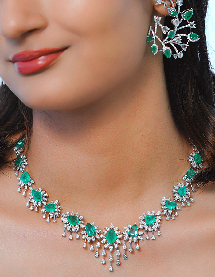 Nature's poetry meets contemporary minimalism in Sruthilaya's bespoke collection. Behold the exquisite neckpiece, meticulously crafted to echo the delicate beauty. Each piece is a symphony of precision, capturing the essence of nature in its modern silhouette. Adorn yourself with the artistry of Sruthilaya, where every detail tells a story of timeless grace and sophistication.