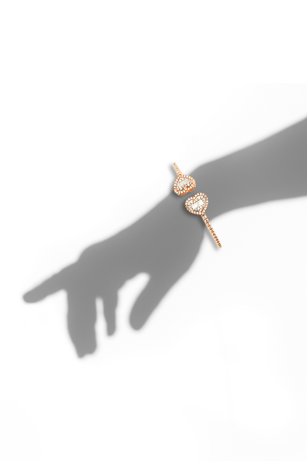 HEART BRACELET Diamond setting METAL TYPE: 18 KARAT ROSE GOLD GROSS WEIGHT: 6.54 GM STONE: DIAMOND 1.82 CT Diamond setting METAL TYPE: 18 KARAT ROSE GOLD STONE: DIAMOND 2.3 CT NET WEIGHT: 6.176 GM