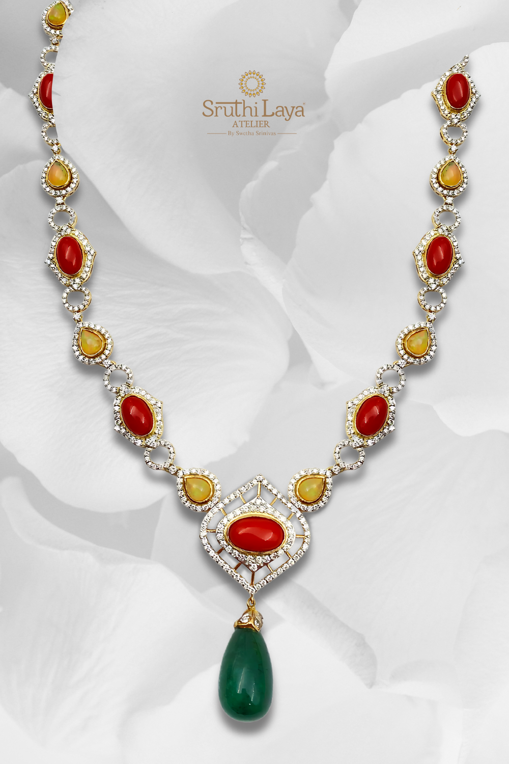 This longchain embodies everything the Sruthilaya woman represents: confident, sophisticated, and effortlessly captivating. A fine, handcrafted luxury piece, the "Jewel of the Ocean" is the perfect reflection of timeless beauty and the essence of self-expression.