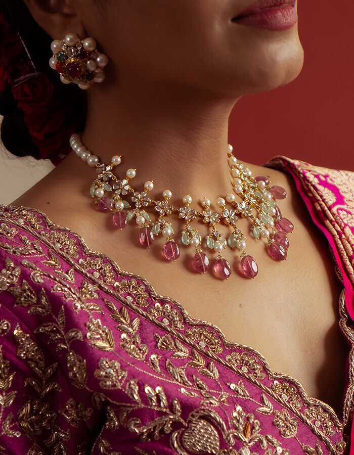 The "Jardin de Fleur" Choker Necklace from Sruthilaya’s "For Your Love of You" collection is a European-inspired masterp...