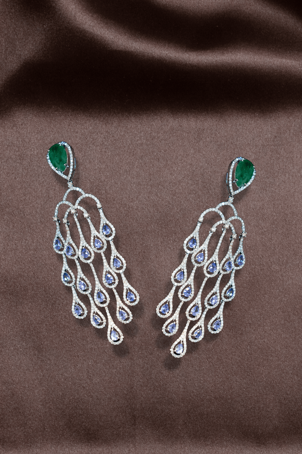 Discover the exquisite beauty of Sruthilaya’s Emerald and Tanzanite Drop Earrings, inspired by the graceful forms of aquatic life. Featuring curved emeralds and tanzanites set in flowing, organic shapes, these earrings capture a sense of serene movement and minimal elegance. Crafted in premium 18-karat gold, they offer a striking balance between subtlety and allure, designed to catch the eye with every glance. Perfectly suited to complement any face shape, these rare treasures invite you to embrace sophistication with a natural, understated charm. Shine with unparalleled grace in these captivating, nature-inspired gems!
