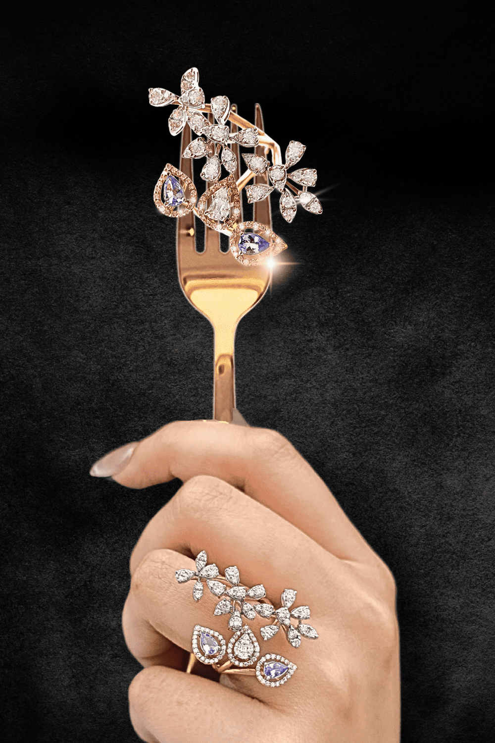 Introducing the Tanzanite and Diamond Ring, a nature-inspired masterpiece in 18-karat gold. Featuring vibrant tanzanite reminiscent of twilight skies, this exquisite design is accented by sparkling diamonds evoke dewdrops at dawn. A stunning statement piece, it embodies luxury and elegance, perfect for elevating any jewellery collection.