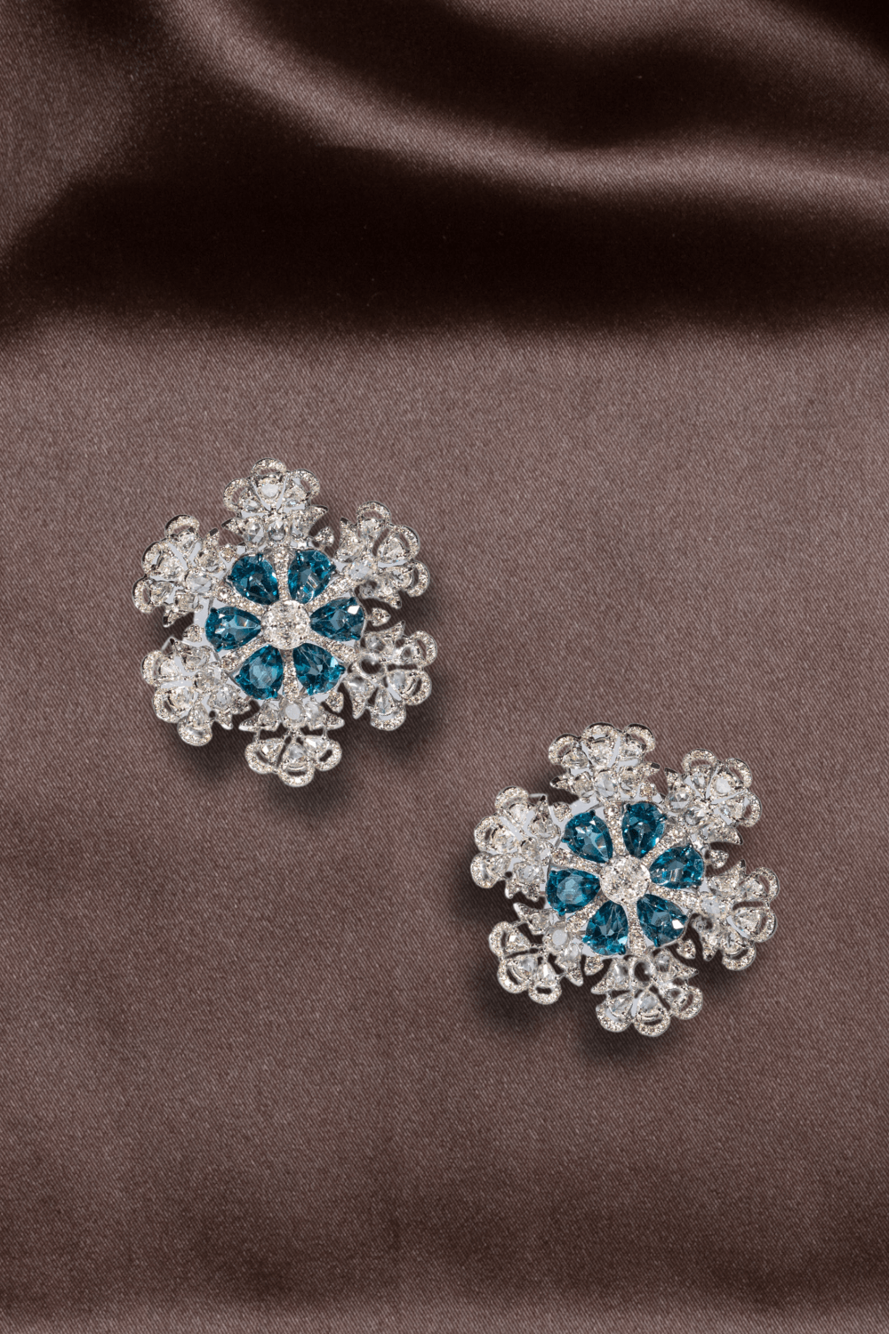 Discover the exquisite beauty of Sruthilaya’s Diamond Snowflake Stud Earrings, inspired by the first fall of winter. Featuring radiant diamonds and a subtle hint of blue topaz, these earrings capture the delicate beauty of snowflakes with a creative twist. Crafted in premium 18-karat gold, they blend modern elegance with timeless charm. Designed to complement all face shapes, their distinctive style and brilliant sparkle make them the perfect choice for any special occasion. Embrace the magic of winter and steal the show with these enchanting treasures!