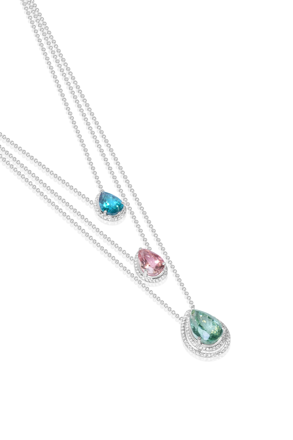 Triple Dream Layered Necklace is a vivid celebration of tourmaline’s enchanting diversity. Set in three cascading layers of 18K white gold, pear brilliant-cut multicoloured tourmalines shimmer with dichroic beauty—appearing in different colours from every angle. Known for their piezoelectric and pyroelectric properties, these gems are surrounded bypave-set round brilliant-cut diamonds. A radiant harmony of colour, science, and elegance—this piece is a dreamscape crafted for the modern muse.