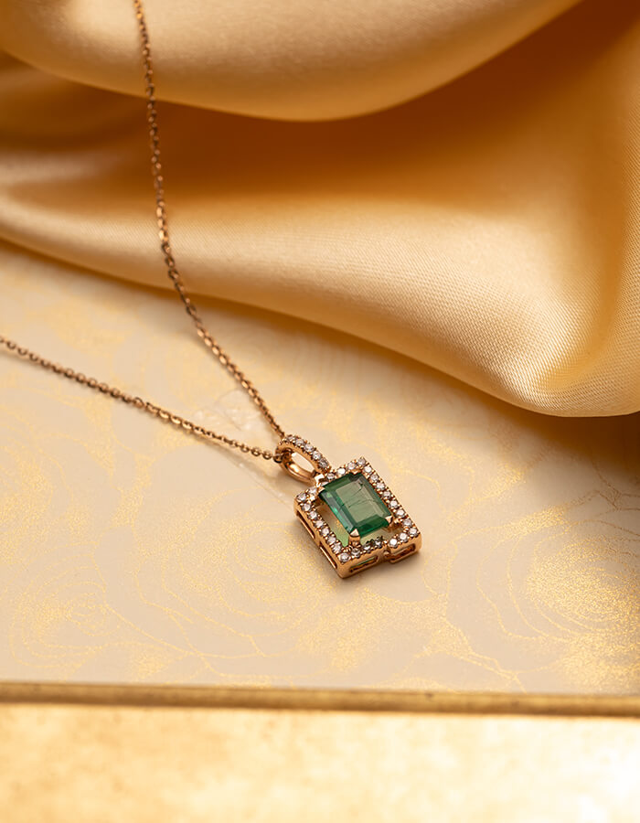 The timeless pendant in high-quality zambian emerald and diamonds designed in Victorian-inspired pave setting. This piece is a classic combination of elegance and modernity.