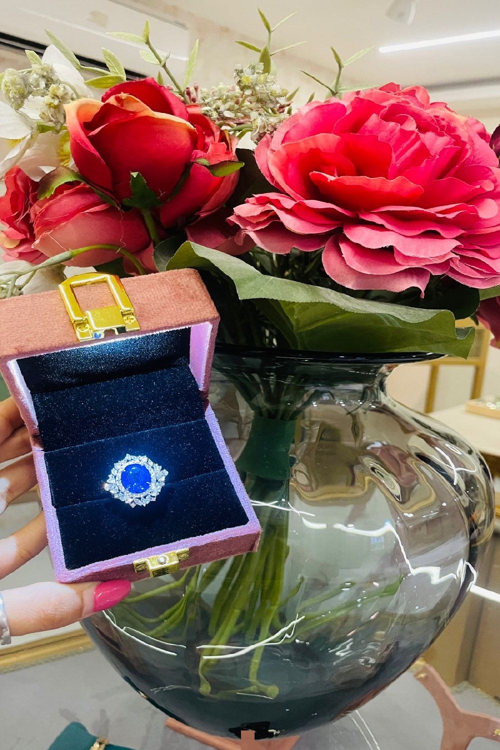 blue saphire ring with diamond...